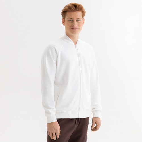Стильная толстовка бомбер унисекс на реверсной молнии свободного силуэта с прорезными карманами в рамку.