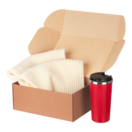 Подарочный набор Forges, бежевый/красный (шарф, термокружка) под нанесение логотипа