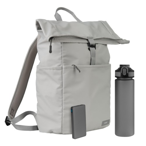 Подарочный набор Boston, серый (бутылка, ЗУ, рюкзак) под нанесение логотипа